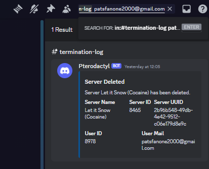 Copy the client's email address and head over to the #termination-log channel in the admin discord server.
